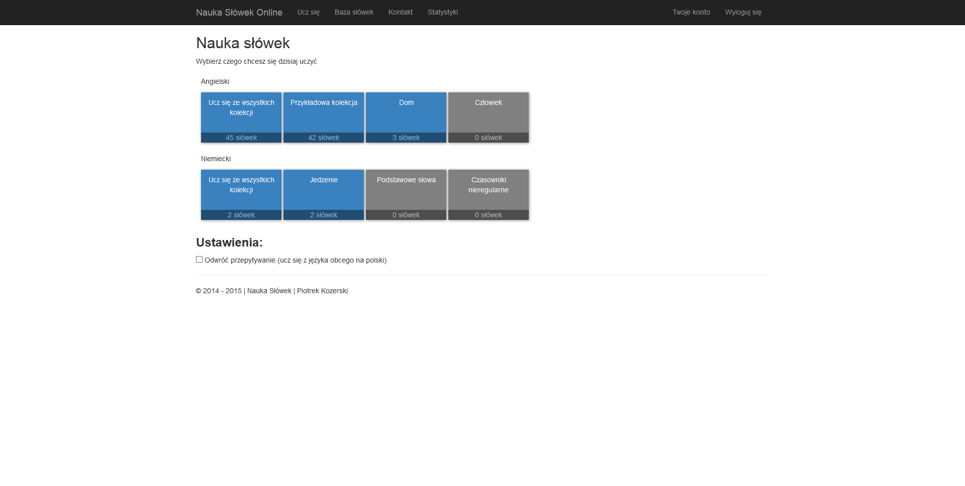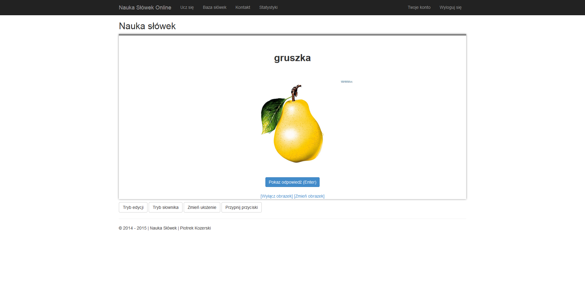 Learning vocabulary / Nauka słówek December 26, 2014 One-minute read Websites • Aspnet • Csharp • JqueryAbandoned (but still available)Web app similar to Anki for learning vocabulary of foreign languages.Available here (polish language only). Keep in mind it’s not actively developed since 2014.